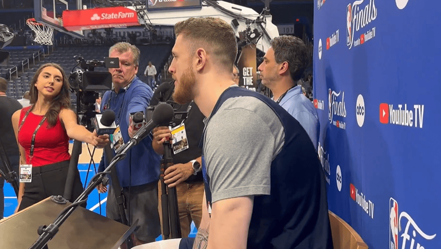 虎扑06月22日讯 今日,雷霆球员哈尔滕施泰因接受了记者采访。